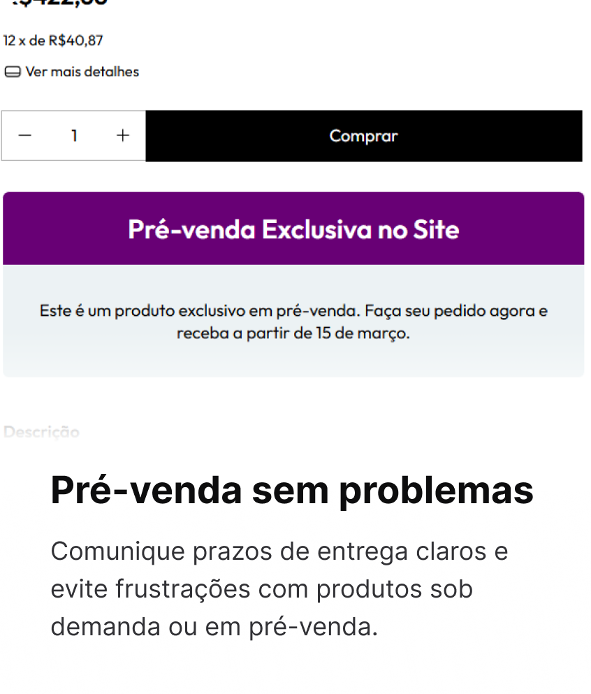 Extiende el tiempo de entrega y vende productos que aún no han sido lanzados en tu tienda.